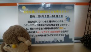 コミュニティや環境について考えるきっかけとして院内待合室の照明を消灯していつもと違うムーンライトな空間でゆったりとした時間を過ごしていただくプログラム。